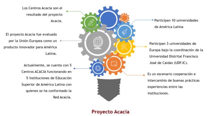 El Centro Acacia es una dependencia  de la Universidad Distrital Francisco  José de Caldas creado para Apoyar,  Cultivar, Adaptar, Comunicar, Innovar  y Acoger prácticas académicas y  profesionales, desde el respeto, la  afectividad, el acogimiento de la  diferencia y la inclusión de las  comunidades a través de un sistema  integrado de módulos relacionados  intra e interinstitucionalmente.